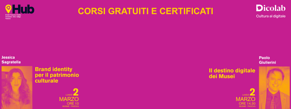 Lunedì 2 marzo al via due corsi di formazione dedicati alla brand identity per il patrimonio e gli istituti culturali e alle strategie digitali come strumenti per connettere i musei e gli istituti culturali con il proprio pubblico.